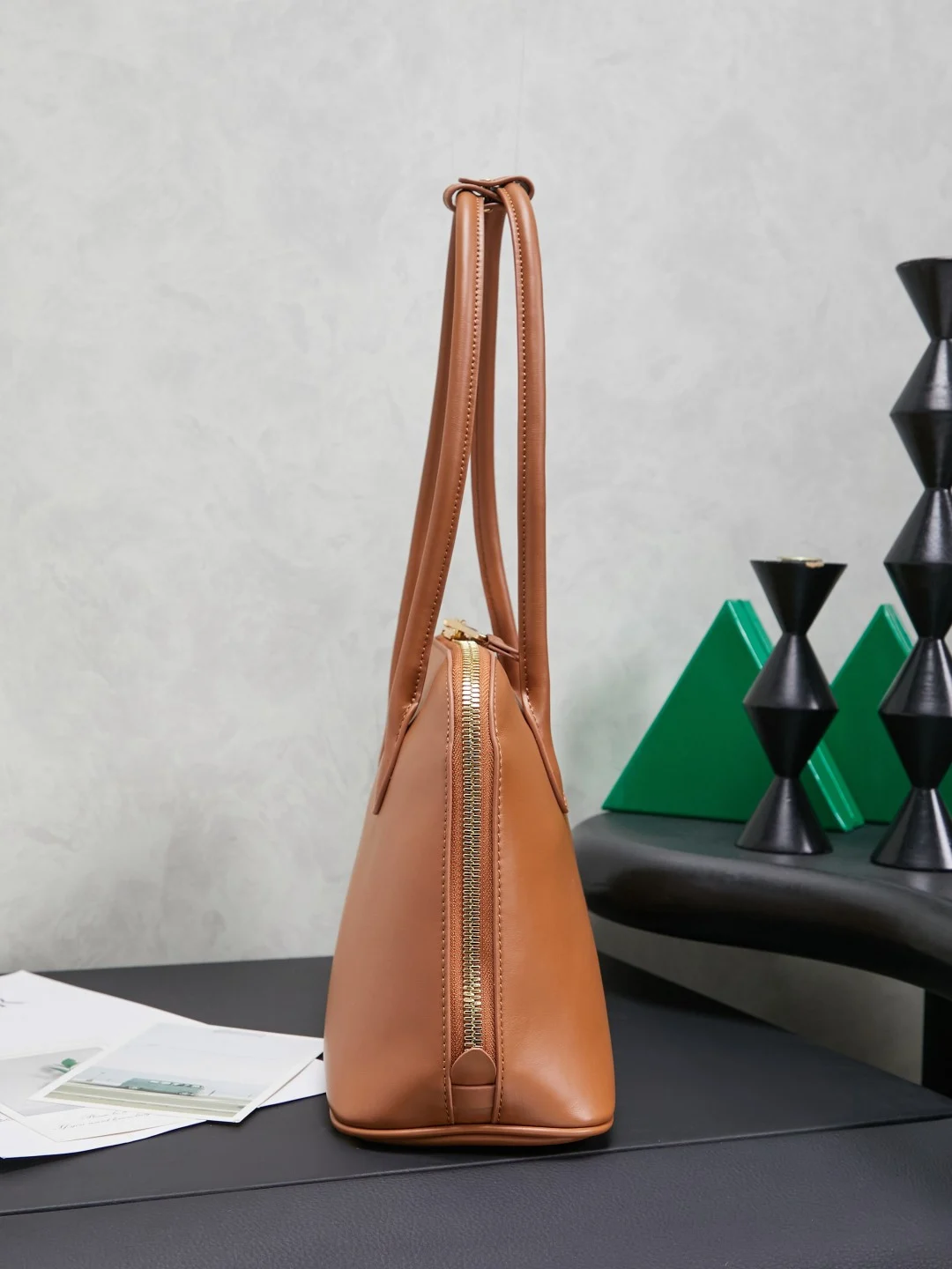 • Versatility: Equipped with dual elongated flat leather handles that allow it to be carried as a handbag or a shoulder bag.